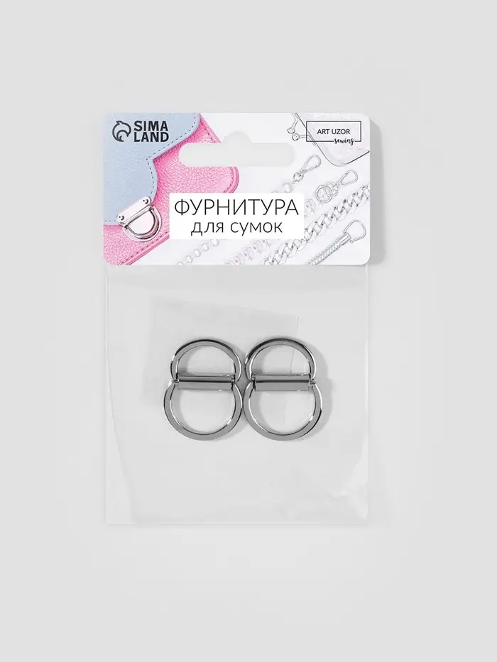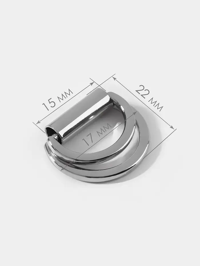 Полукольцо для сумок двойное, d=15 мм, толщина - 1 мм, 2 шт., цвет серебряный