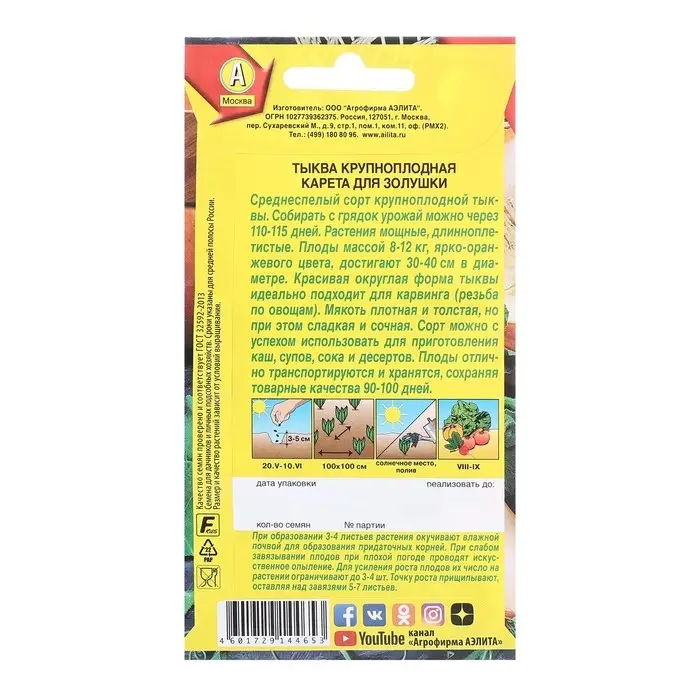 Семена Тыква крупноплодная Карета для золушки Ц/П 1 г