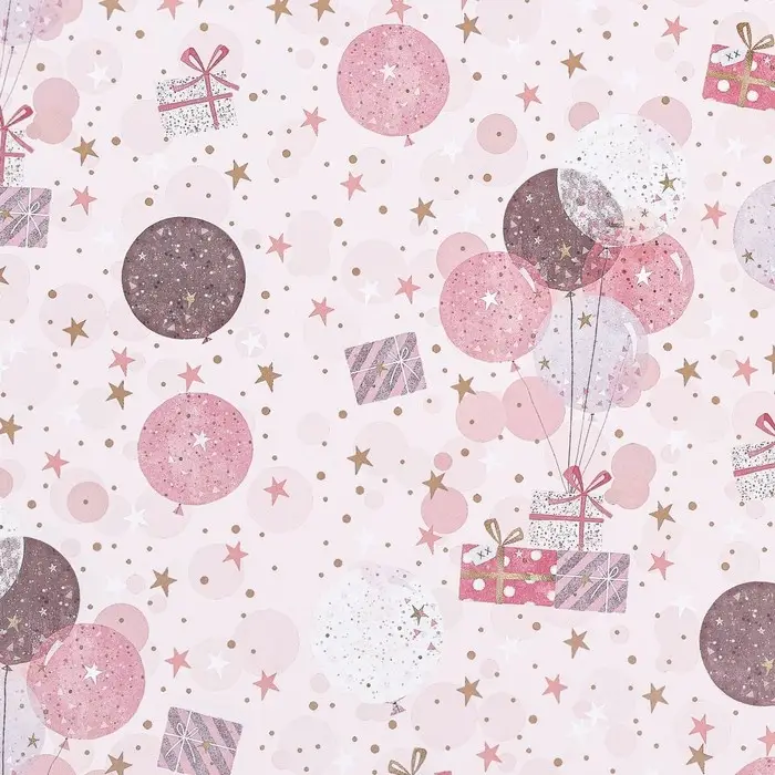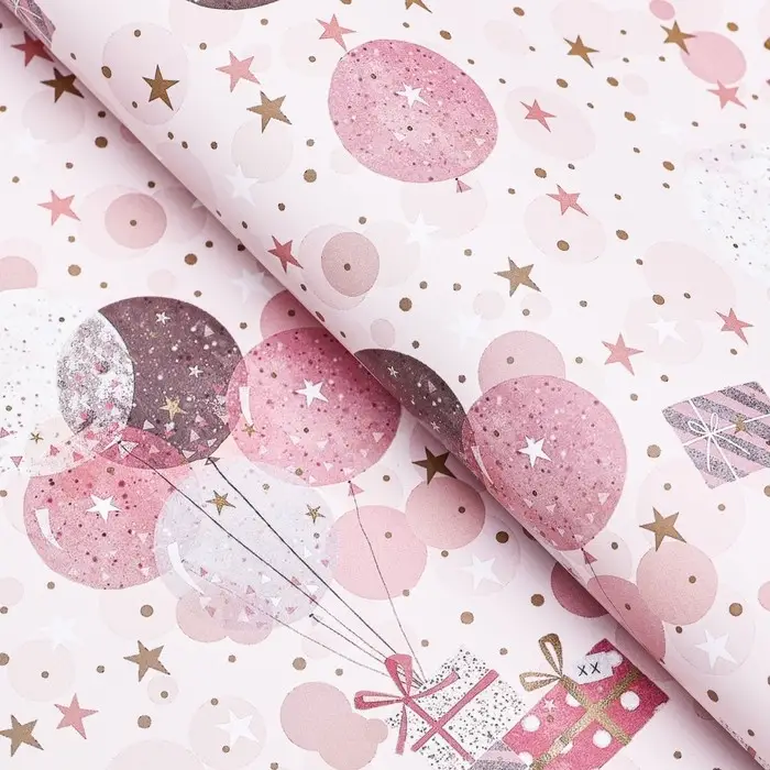 Бумага упаковочная, глянцевая "С днем рождения", подарки с шариками, 70 х 100 см, 1 лист