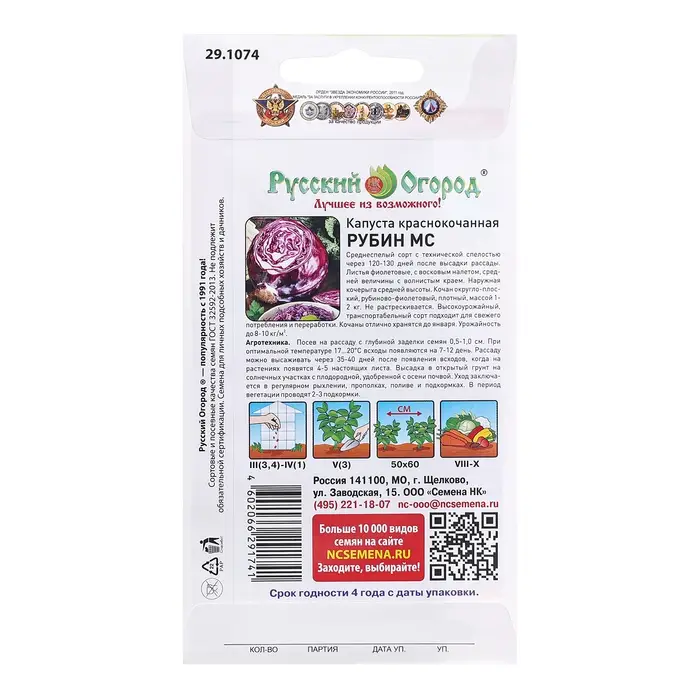 Семена Капуста "Рубин МС" краснокочанная, ц/п, 0,5 г