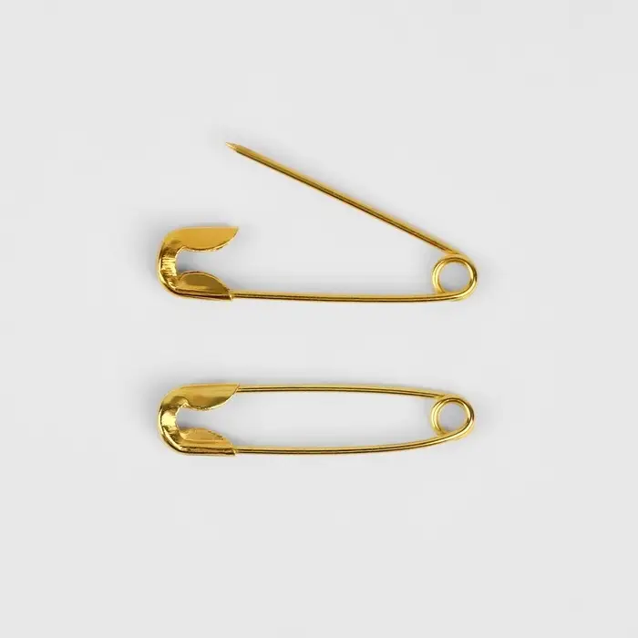 Английская булавка — универсальный помощник в быту, при шитье и рукоделии. Она пригодится для закалывания материала, драпировки ткани, создания украшений. С ней вы можете прикрепить к одежде или домашнему текстилю мягкие аксессуары. Острый край булавки прячется в безопасную петельку, она не уколет и прослужит вам долго.