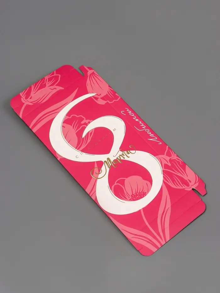 Подарочная коробка для плитки шоколада - это стильная упаковка, созданная для подарков в виде шоколада. Она обычно выполнена из красочного картона или другого прочного материала и идеально подходит для упаковки шоколадных подарков. Эта коробка обеспечивает привлекательный и защищенный способ представления шоколада в виде подарка.