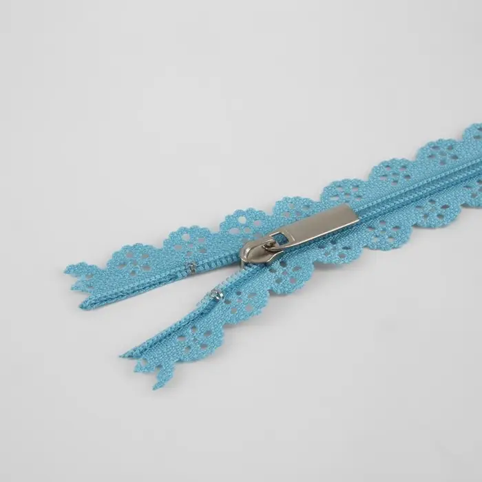 Молния «Спираль», №3, неразъёмная, ажурная, замок автомат, 50 см, голубая