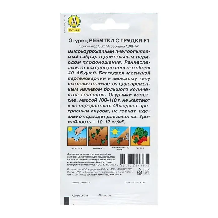 Семена Огурец Ребятки с грядки F1 Ор. А Пч Ц/П 10шт