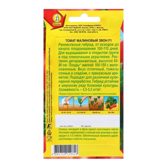 Семена Томат Малиновый звон F1 Р Ц/П 20шт