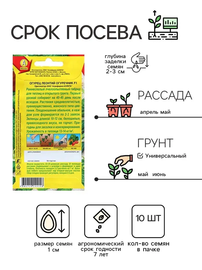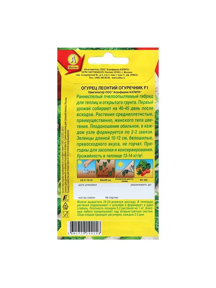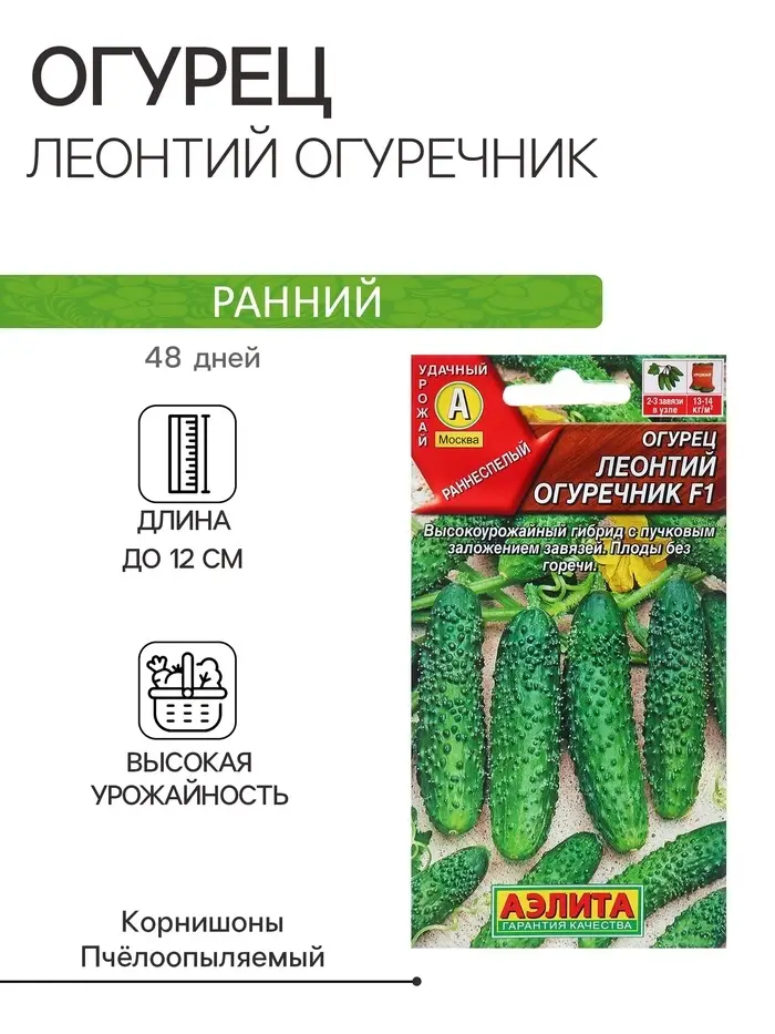Семена Огурец Леонтий огуречник F1 Ор. А Пч Ц/П 10шт