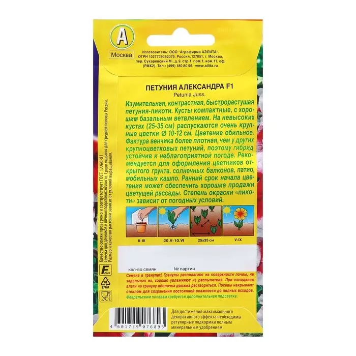 Семена Петуния Александра F1 крупноцветковая Одн (драже в пробирке) Ц/П 7 шт