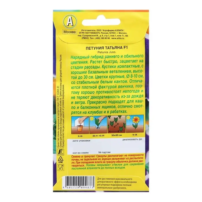 Семена Петуния Татьяна F1 крупноцветковая Одн (драже в пробирке) Ц/П 7 шт