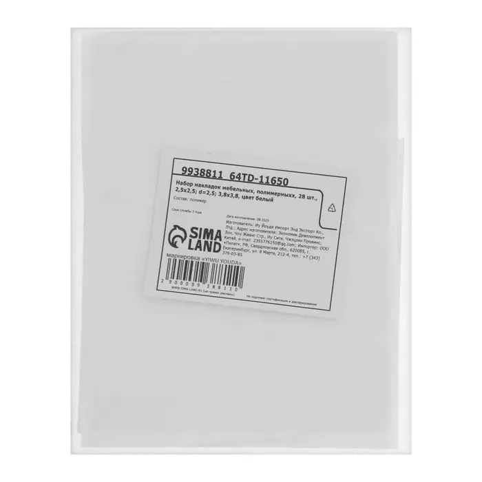 Набор накладок мебельных, полимерных, 28 шт., 2.5×2.5; d=2.5; 3.8×3.8, белый