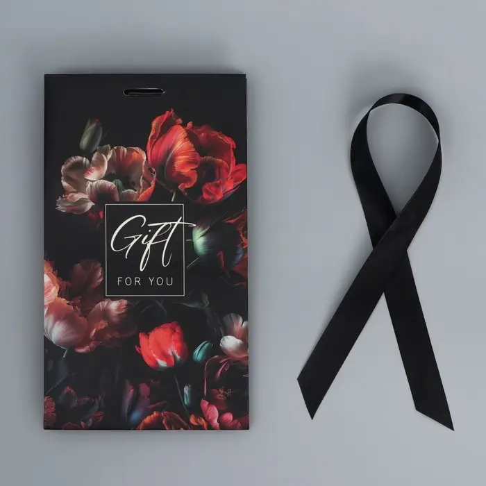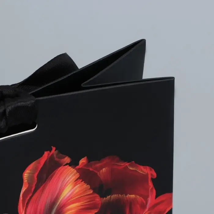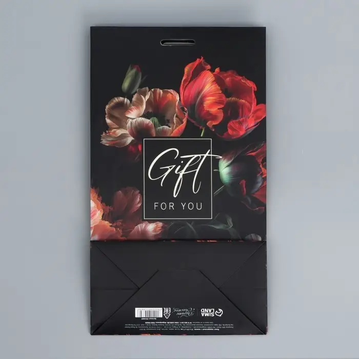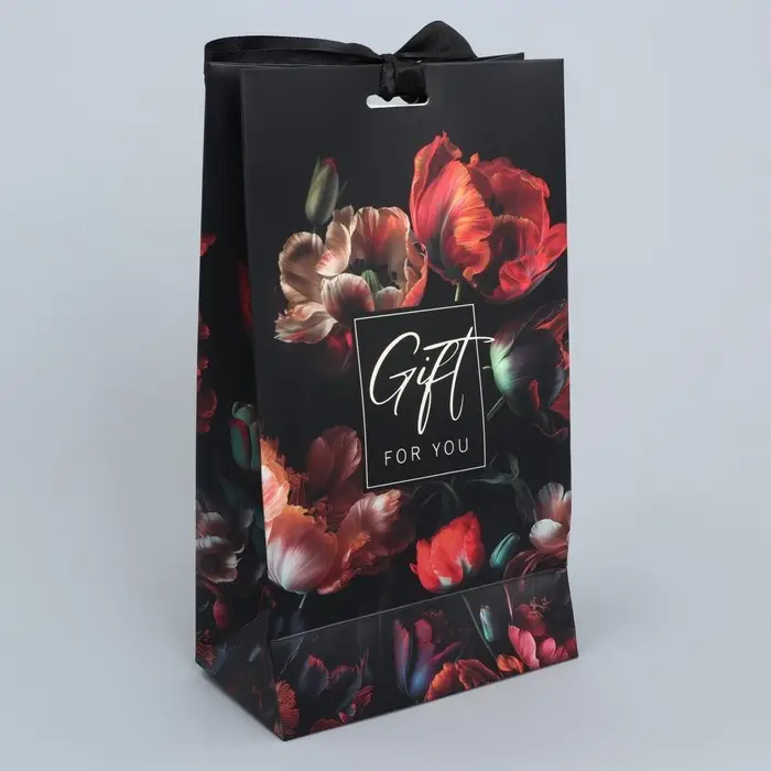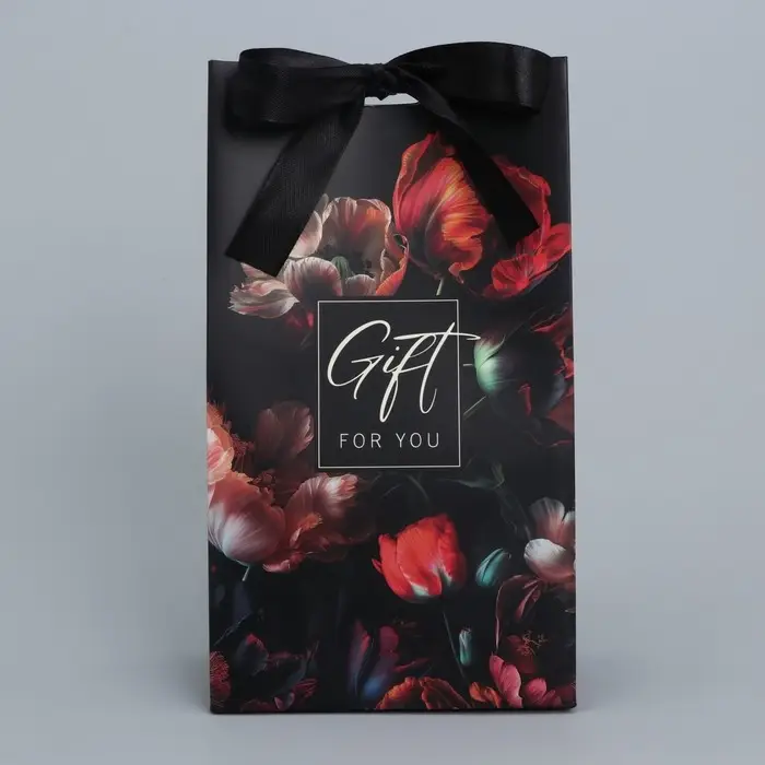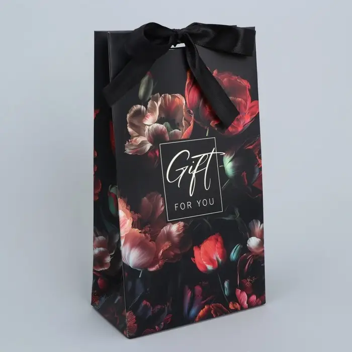 Пакет подарочный с лентой, упаковка, «Ночные цветы», 13 х 23 х 7 см