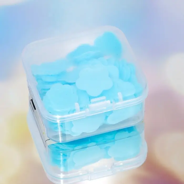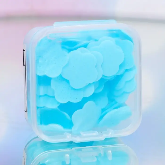 Способ применения: Достаньте сухими руками 1-2 листа, намочите портативное мыло и потрите ладони до образования пены, смойте водой.