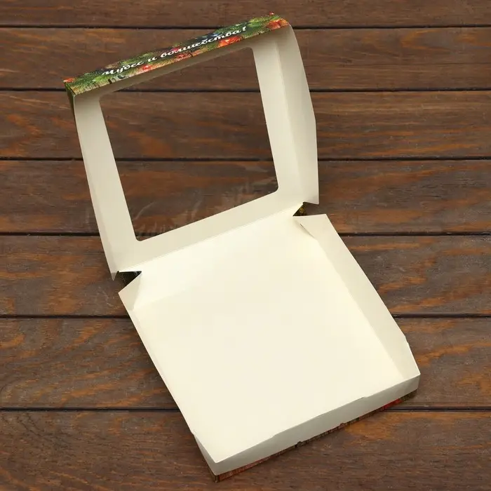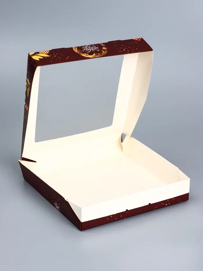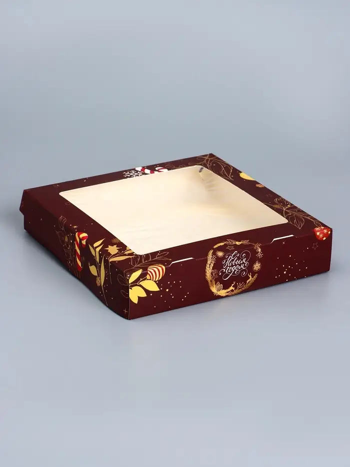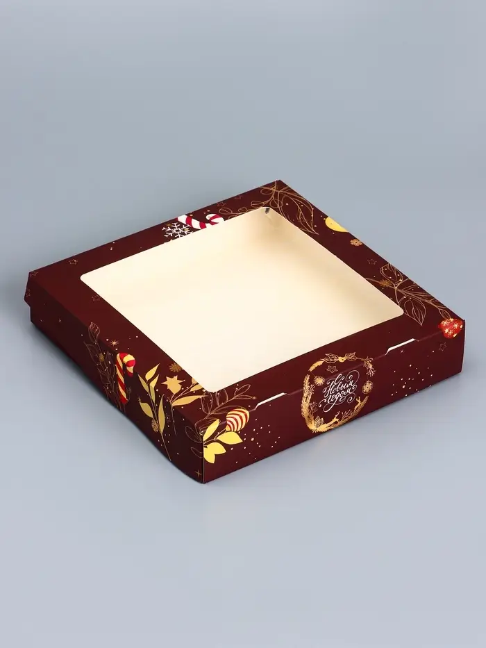 Коробка складная, подарочная новогодняя с окном Merry christmas 20×20×4 см