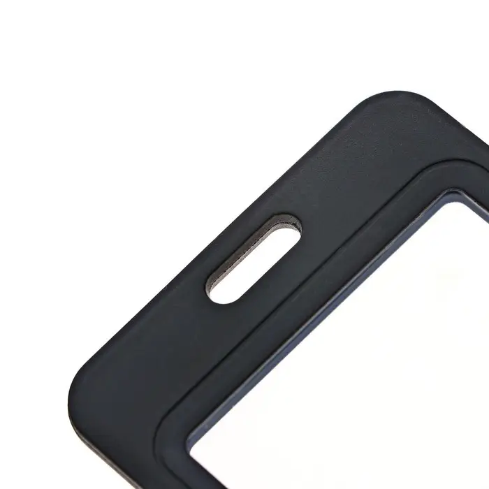 Бейдж-карман вертикальный пластиковый, внешний 110x70мм, внутренний 85x54мм, рулетка 40см, чёрный.
