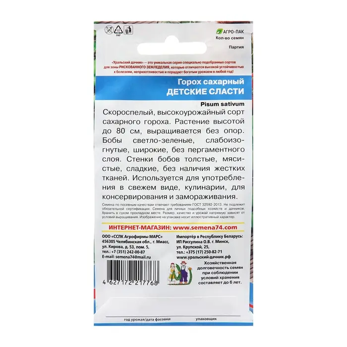 Семена Горох сахарный "Детские сласти", скороспелый, 5 г