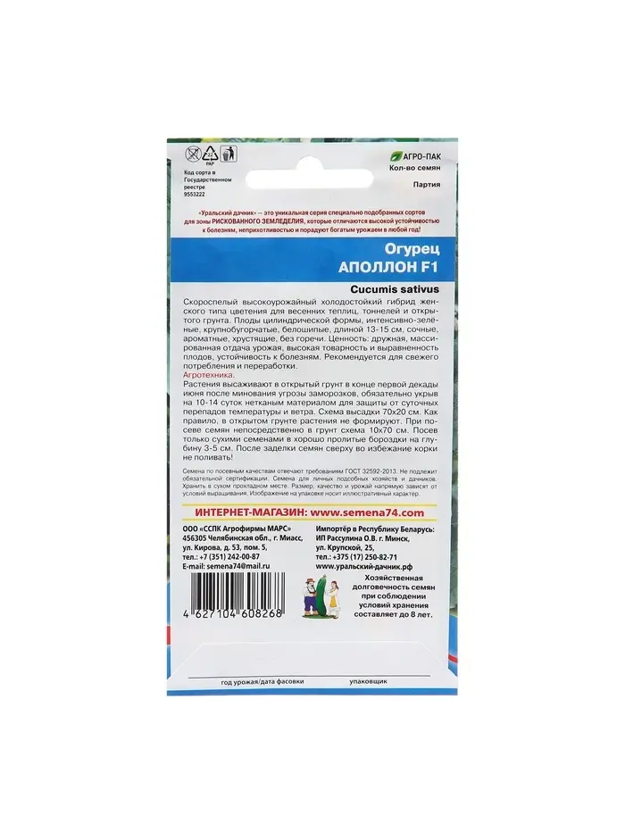 Семена Огурец "Лилипут", F1, пикуль, серия 1+1, 20 шт