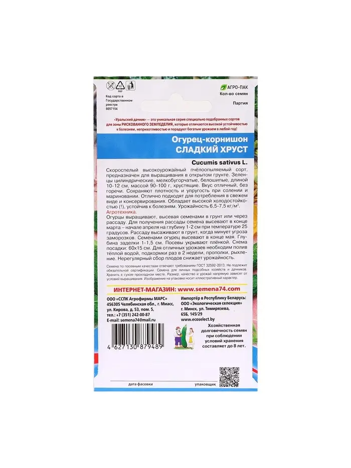 Семена Огурец "Сладкий хруст - корнишон", 12 шт