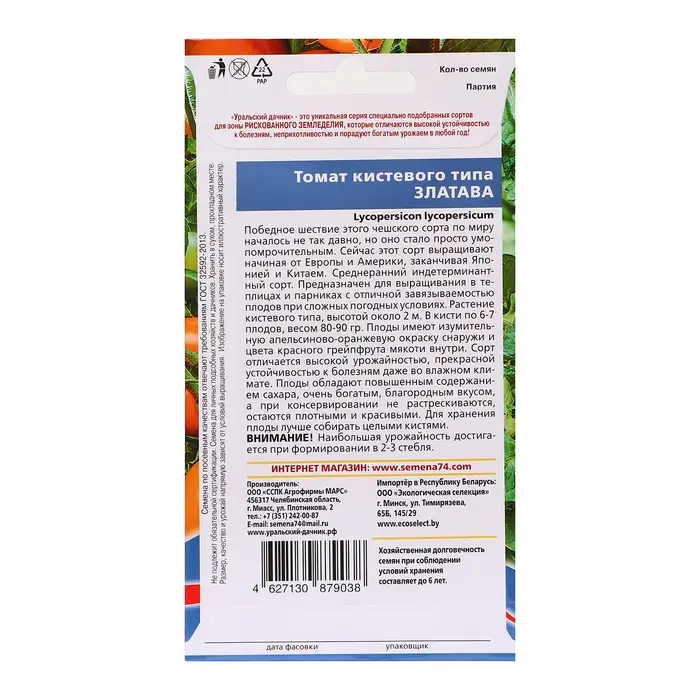 Семена Томат "Златава - кистевого типа", 12 шт