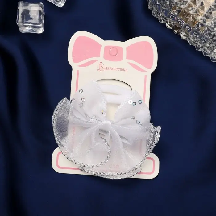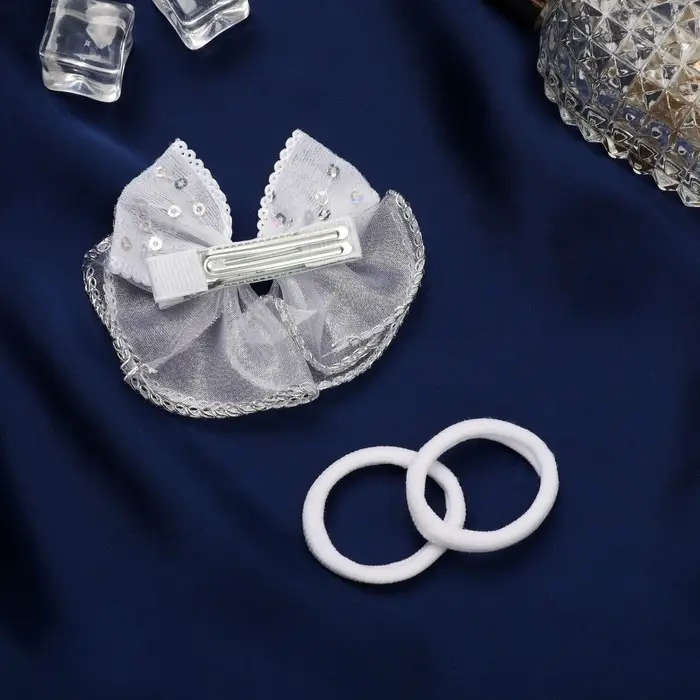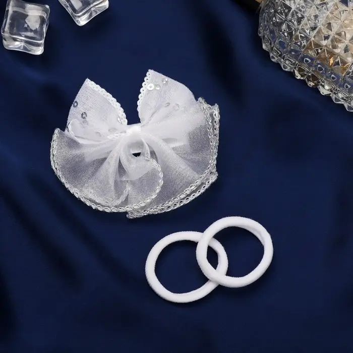 Набор для волос "Школьница" (зажим 7 см, 2 резинки 3,5 см) пайетки бант, белый