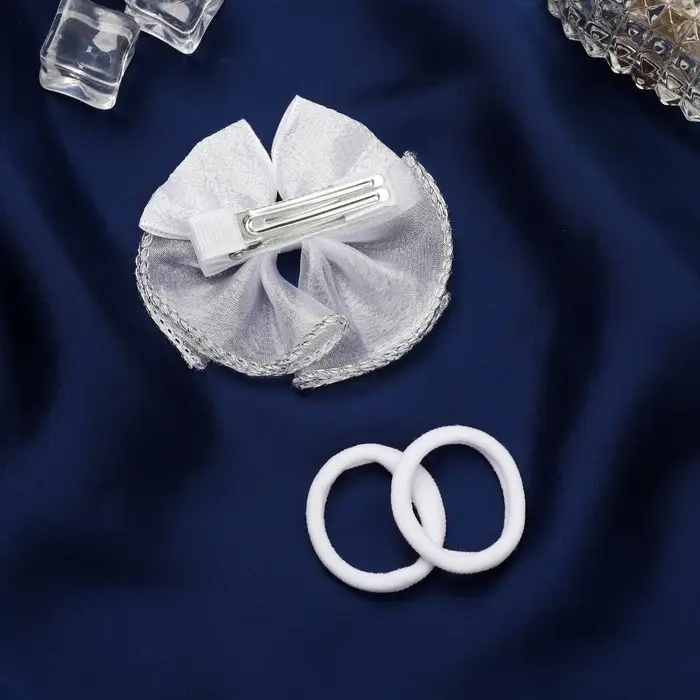 Набор для волос "Школьница" (зажим 7 см, 2 резинки 3,5 см) полупрозрачный бант, белый