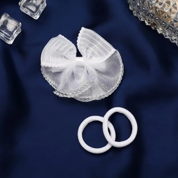 Набор для волос "Школьница" (зажим 7 см, 2 резинки 3,5 см) бант полосы, белый