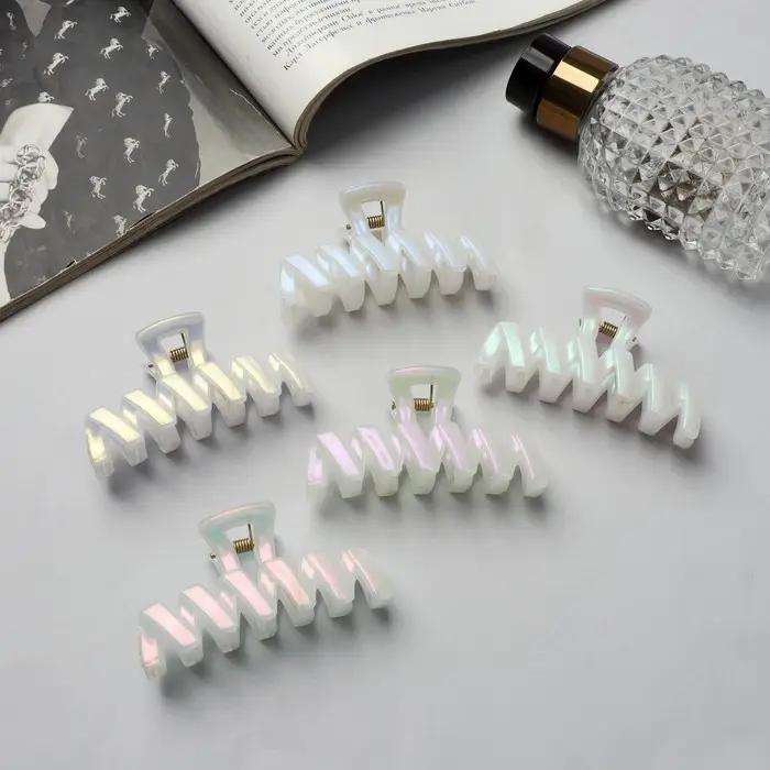 Крабик для волос «Жемчужный», зиг-заг, 7 см, белый