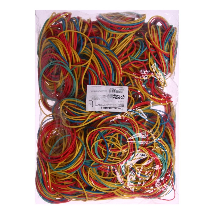 Банковская резинка цветная, 1000 грамм, длина 95 мм, диаметр - 60 мм, сечение 1,7 х 1,7 мм