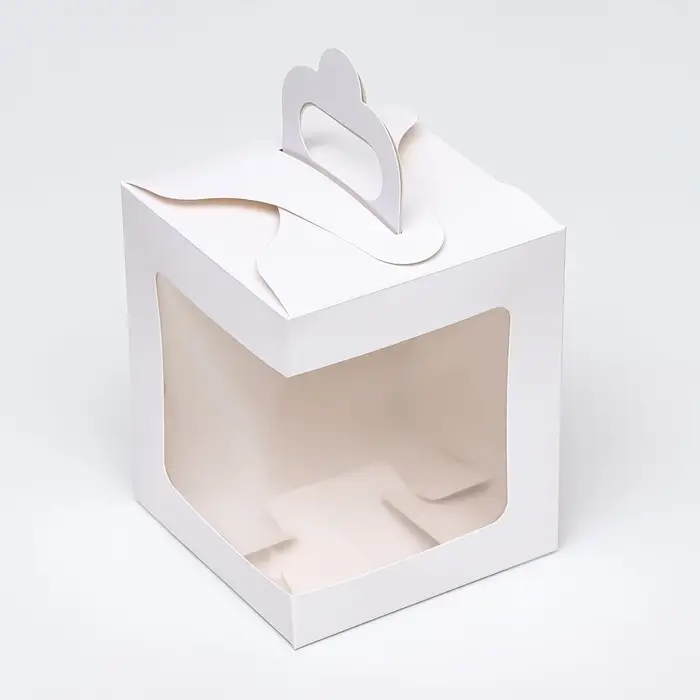 Коробка для пирожного с оконом, белая, 12.5×12.5×15 см