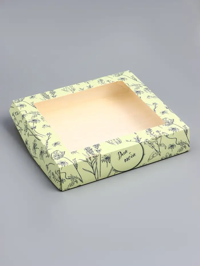 Коробка складная, крышка-дно, "Цветочки", 24 х 17 х 8 см с окном