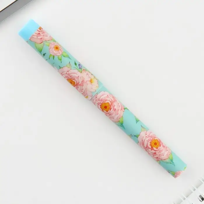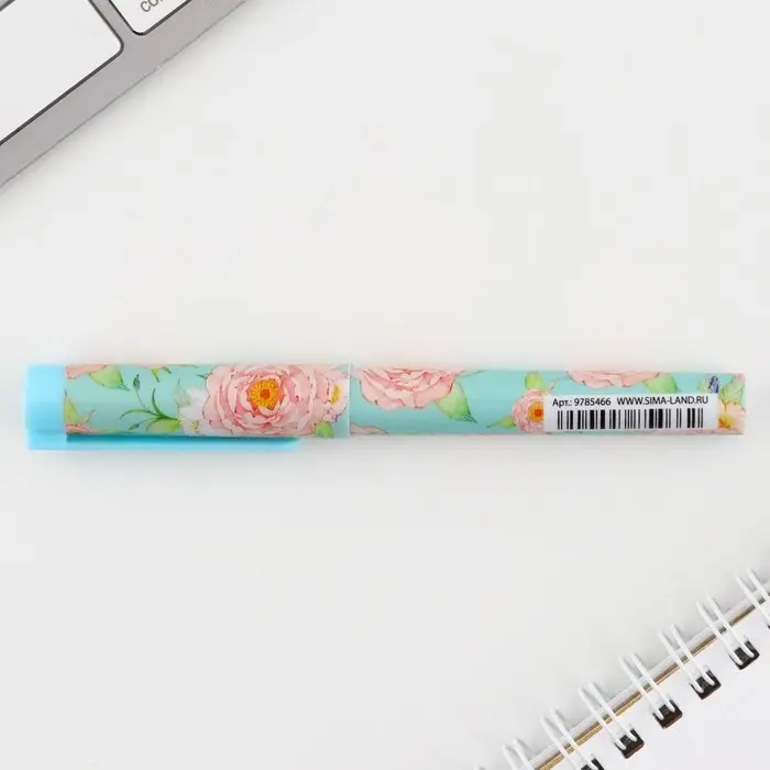 Ручка шариковая, синяя паста, 0.7 мм, с колпачком, пластик «Пионы»