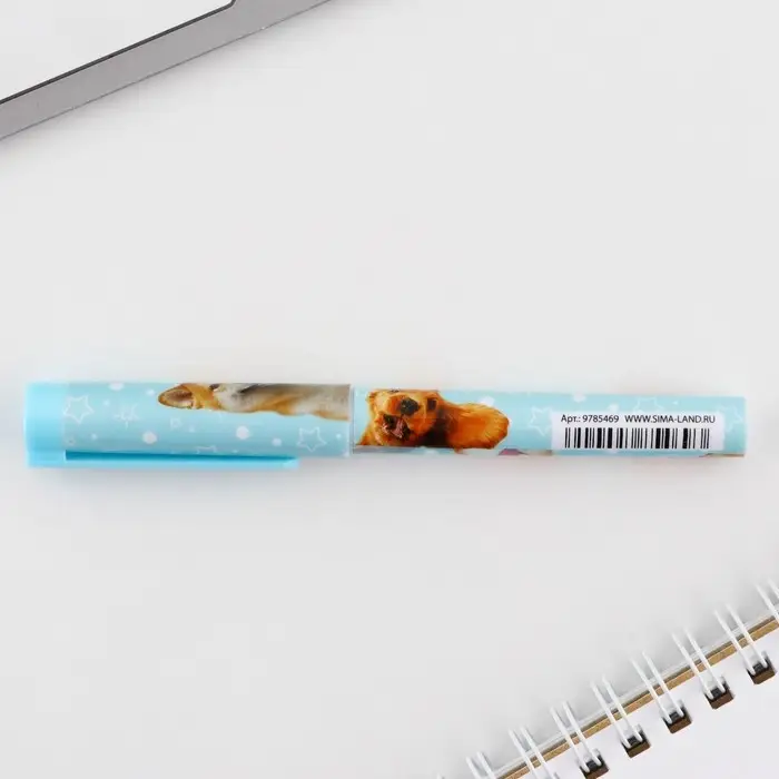 Ручка шариковая, синяя паста 0.7 мм с колпачком пластик «Пёсики»