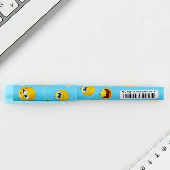 Ручка шариковая, синяя паста 0.7 мм, с колпачком, пластик «Смайлики»
