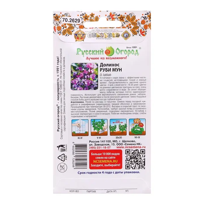 Семена цветов Долихос "Руби мун", 5 шт