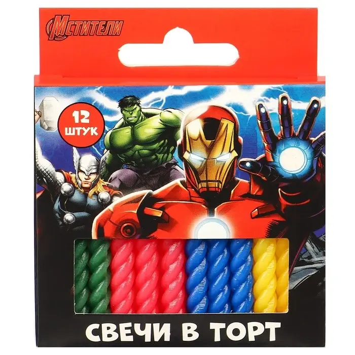 Свечи для торта витые «С Днем Рождения», 12 штук, Мстители