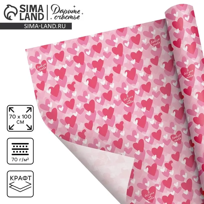 Бумага упаковочная крафтовая «Люблю тебя», 70 х 100 см