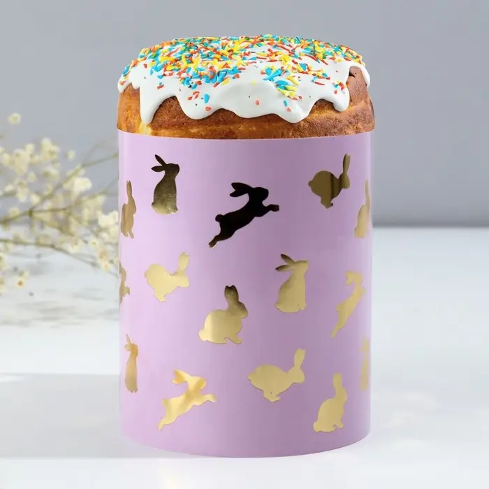 Форма ободок для кулича с тиснением «Кролики» на пасху, 32.2×9 см