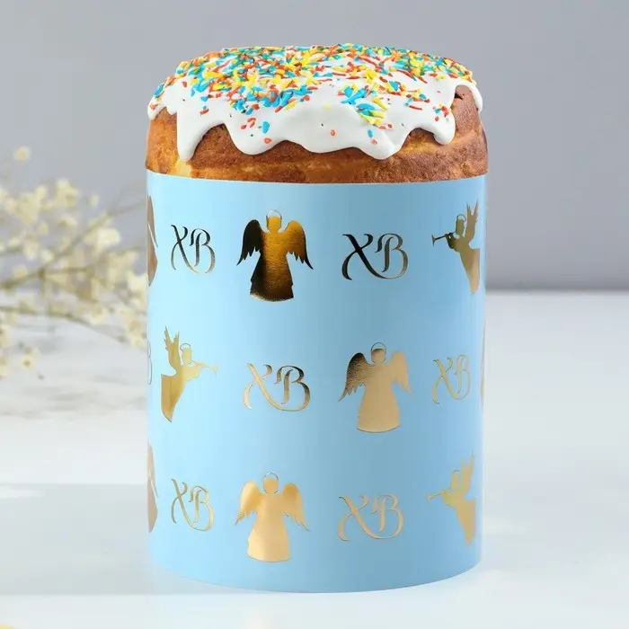 Лента декоративная может использоваться как форма для кулича. Декор для выпечки с ярким рисунком смотрится очень стильно и оригинально.