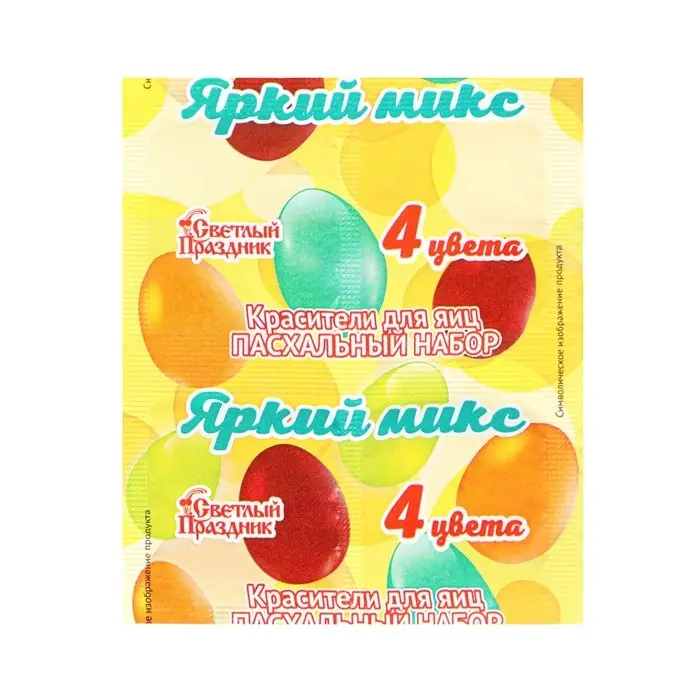 Пищевые красители абсолютно безопасны и безвредны для здоровья, поэтому можно без опасения, давать такие разноцветные декорированные яйца детям. На упаковке с краской Вы найдете инструкцию о том, как правильно окрасить яйца к пасхе. Также можно дополнить декор наклейками из набора, которые привлекут внимание любого ребенка.
