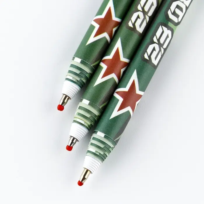Ручка шариковая синяя паста, пластиковая со звездой "С 23 Февраля"