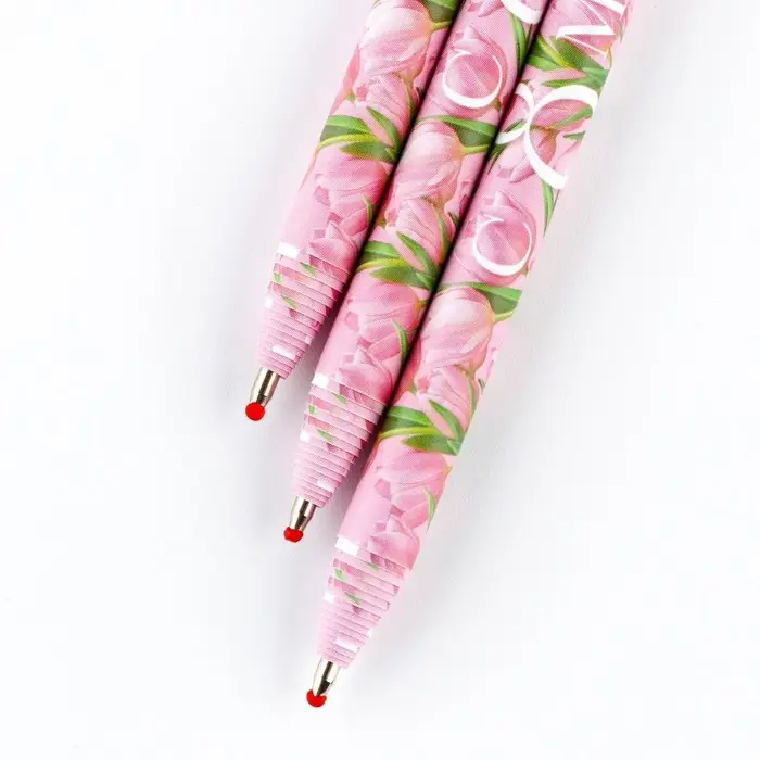 Ручка шариковая синяя паста, пластиковая с цветком "С 8 Марта"