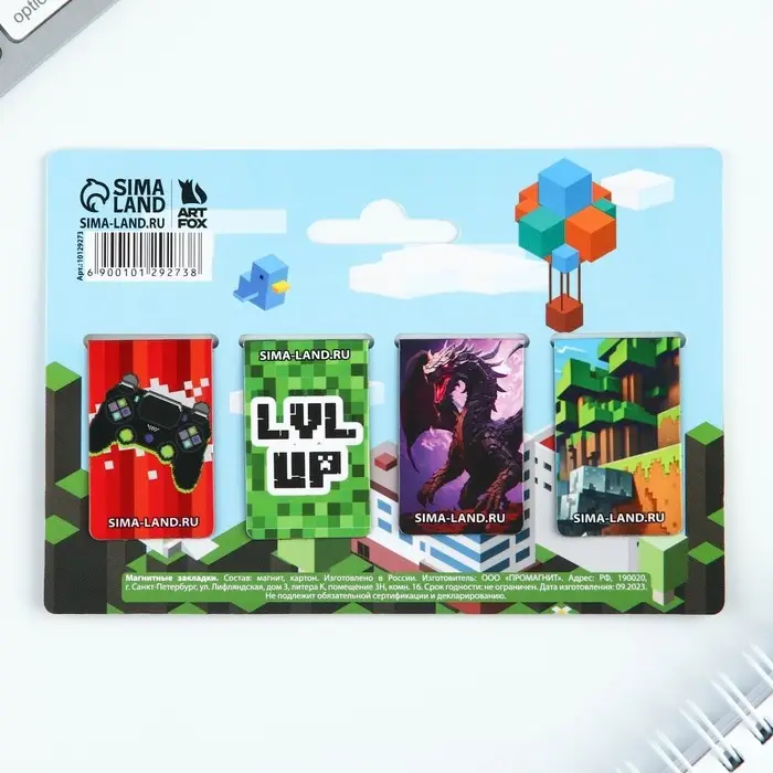 Закладки магнитные для книг, 4 шт «Пиксели»