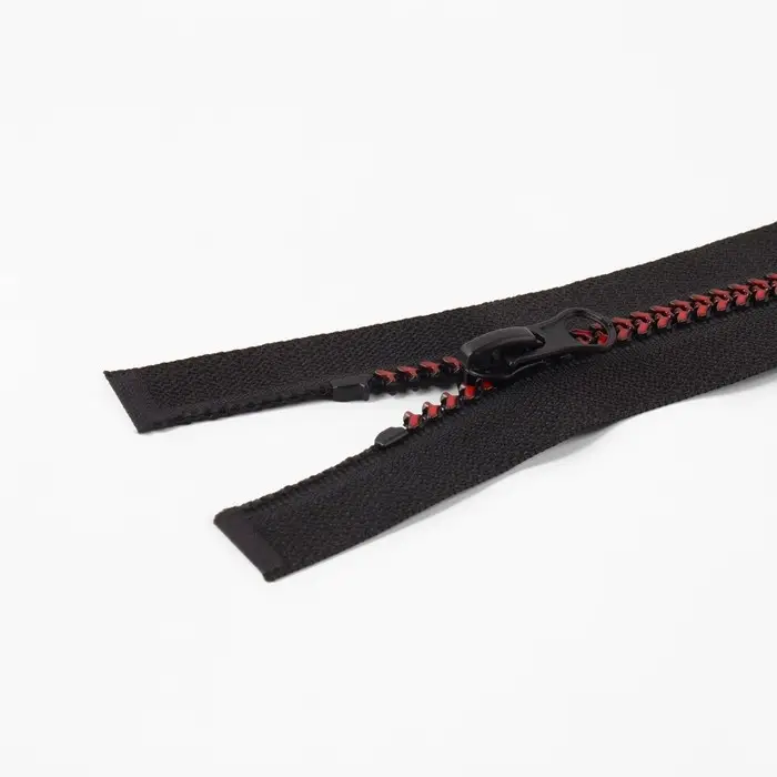 Пластиковые зубцы не истираются. Конструкция износостойкая, не выцветает. Бегунок плавно скользит по застёжке.