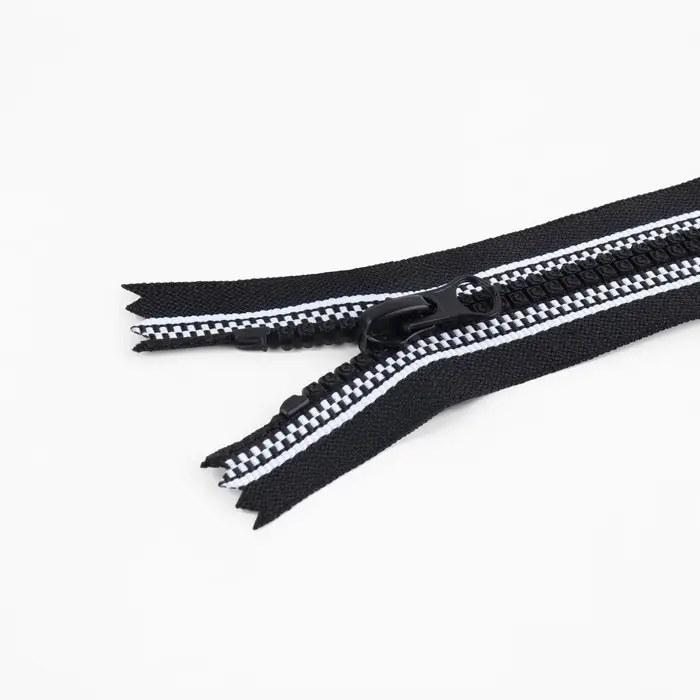 Пластиковые зубцы не истираются. Конструкция износостойкая, не выцветает. Бегунок плавно скользит по застёжке.
