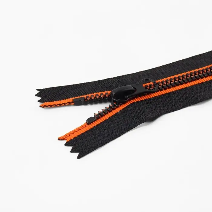 Пластиковые зубцы не истираются. Конструкция износостойкая, не выцветает. Бегунок плавно скользит по застёжке.