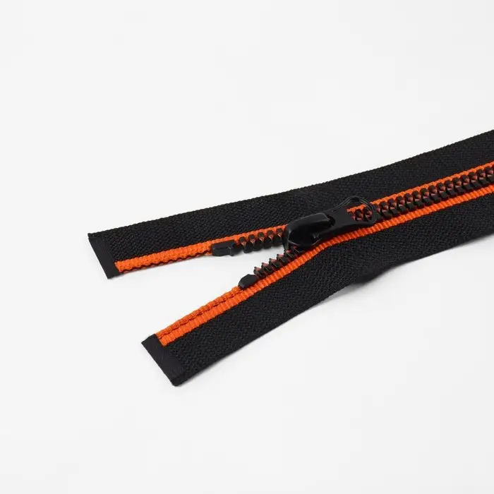Пластиковые зубцы не истираются. Конструкция износостойкая, не выцветает. Бегунок плавно скользит по застёжке.