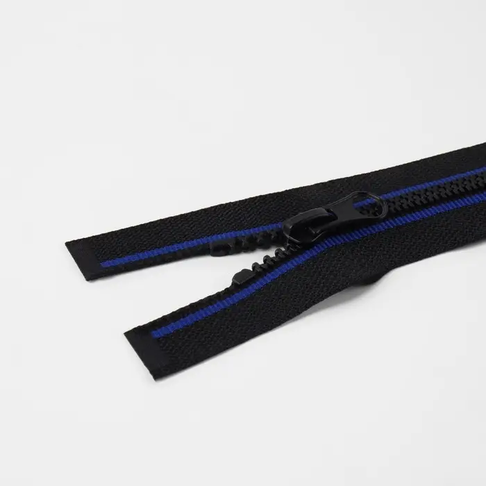 Пластиковые зубцы не истираются. Конструкция износостойкая, не выцветает. Бегунок плавно скользит по застёжке.