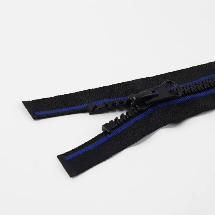 Пластиковые зубцы не истираются. Конструкция износостойкая, не выцветает. Бегунок плавно скользит по застёжке.