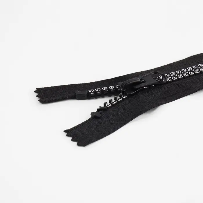 Пластиковые зубцы не истираются. Конструкция износостойкая, не выцветает. Бегунок плавно скользит по застёжке.