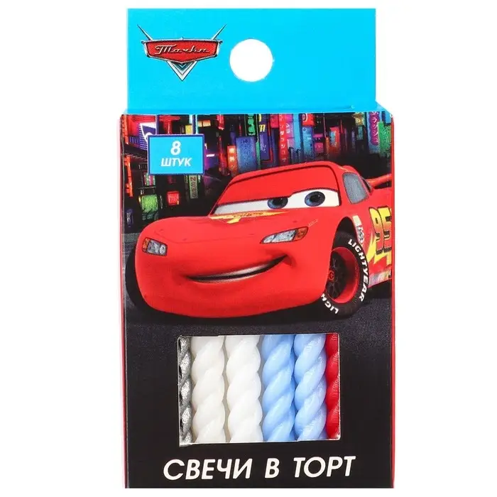 Свечи для торта витые «С Днем Рождения», 8 штук, Тачки