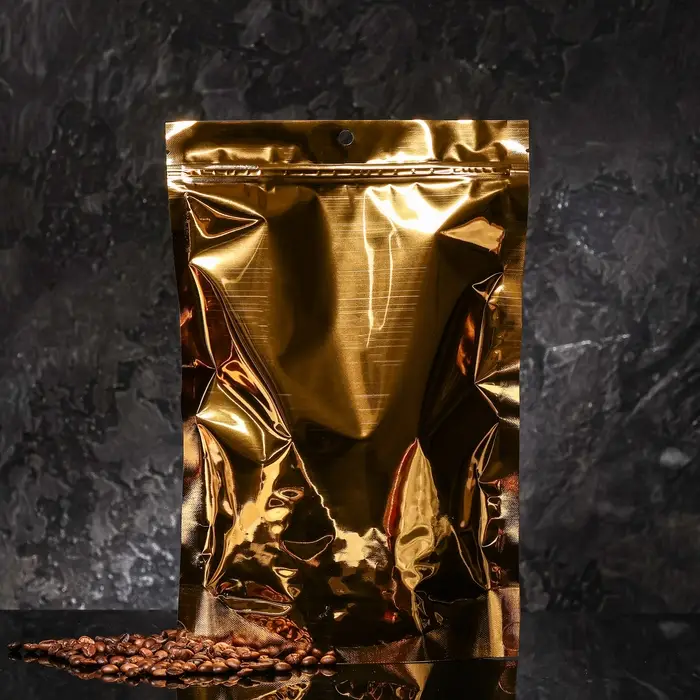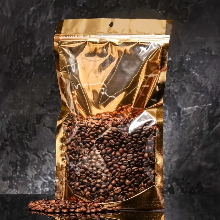 Пакет дой-пак, матовый, золотой, с прозрачной стенкой,20 х 30 х 8 см
