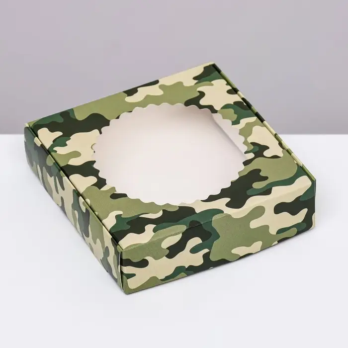 Коробка сборная с окном, «Камуфляж», 11.5×11.5×3 см